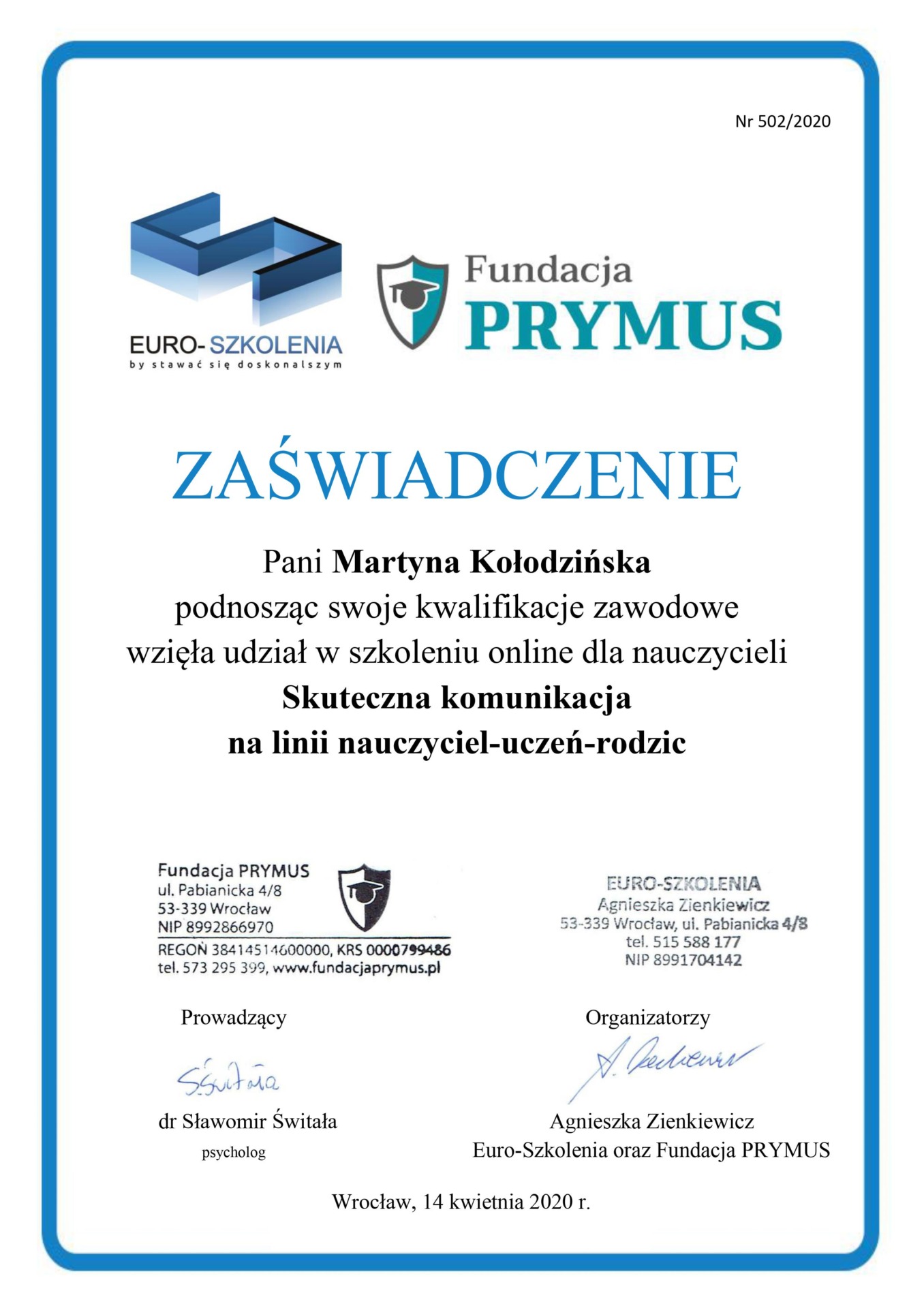 Nr rachunku bankowego: 21 1020 5242 0000 2202 0428 9716