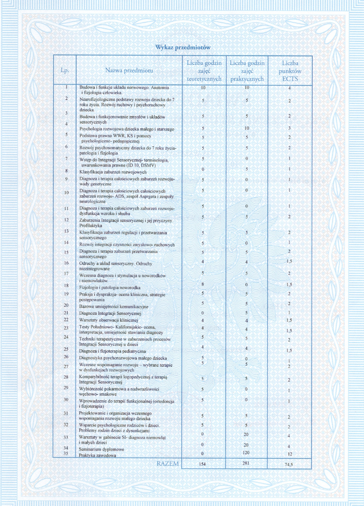 | Konsultacje z terapeutą SI | 320 zł |