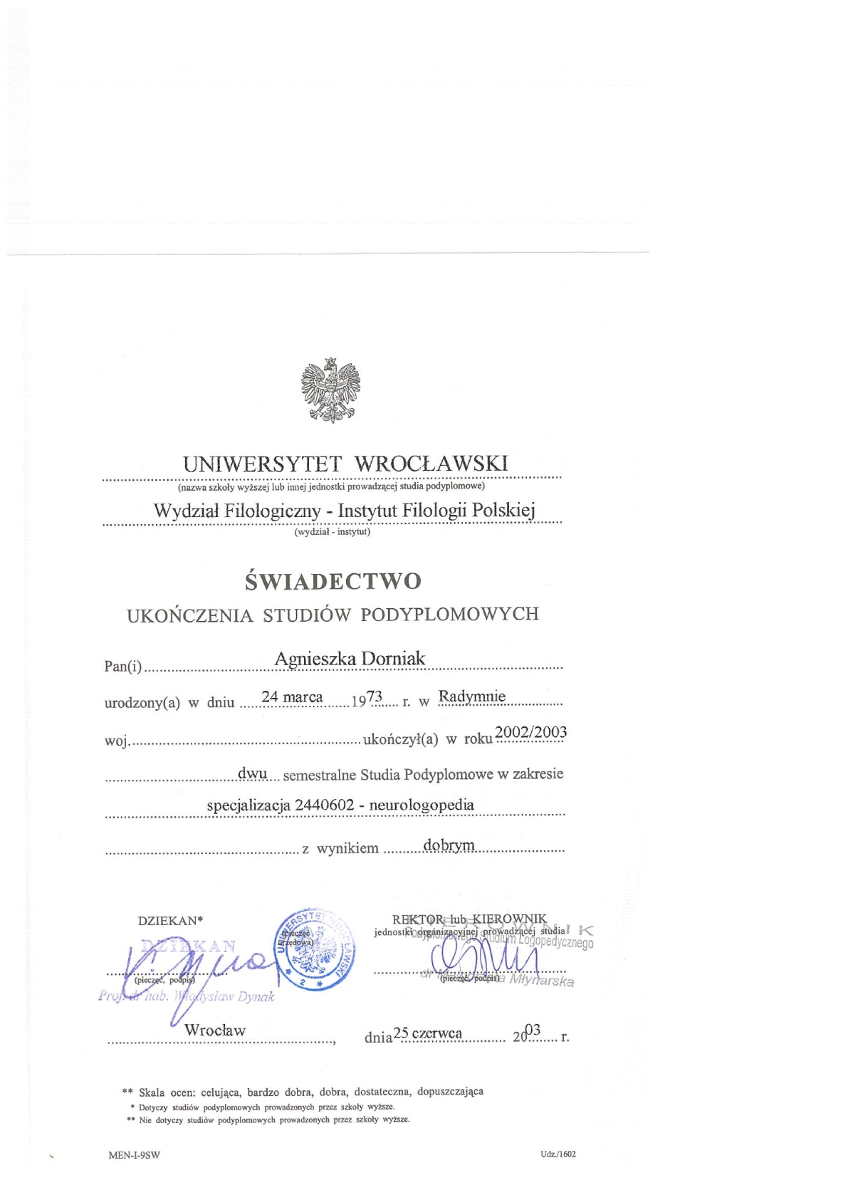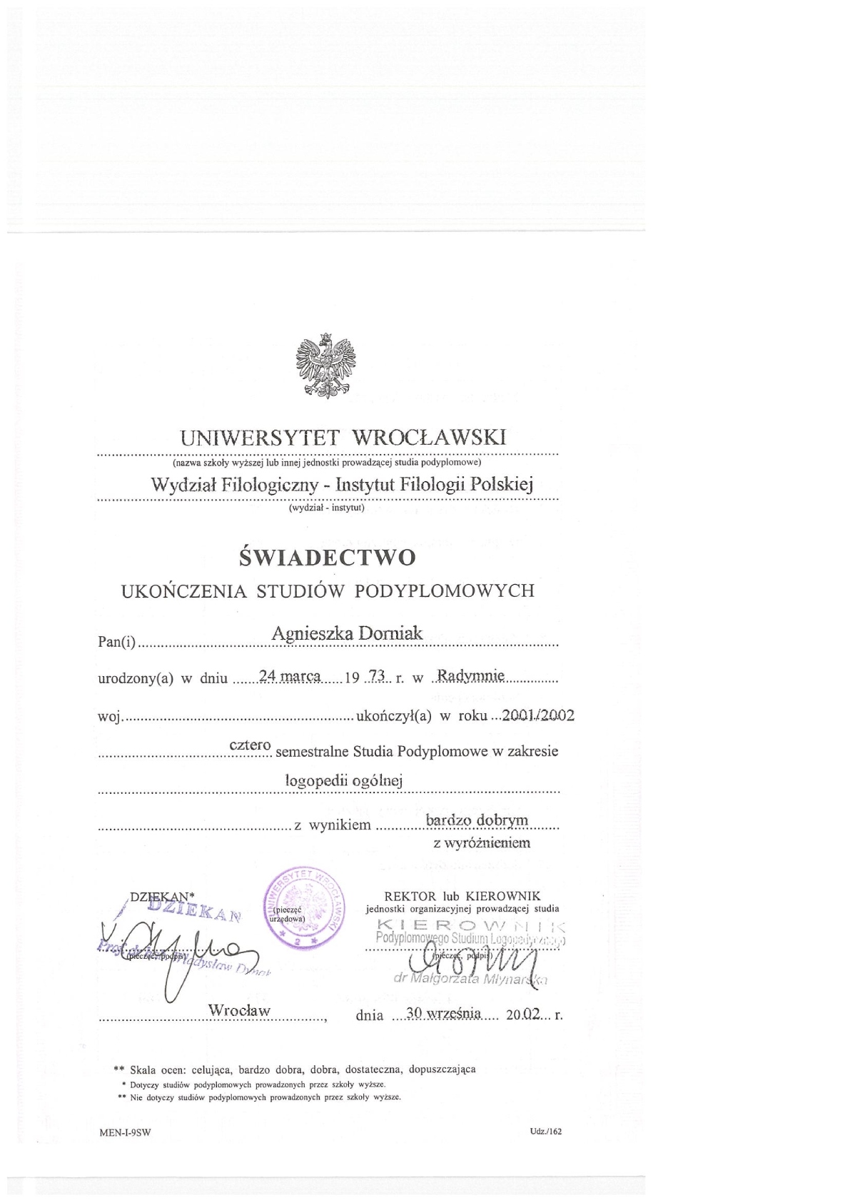 | Zaświadczenie (inne niż opinia po diagnozie) | 100 zł |
